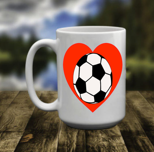 Soccer Ball in a Heart Player, 15 oz Mug