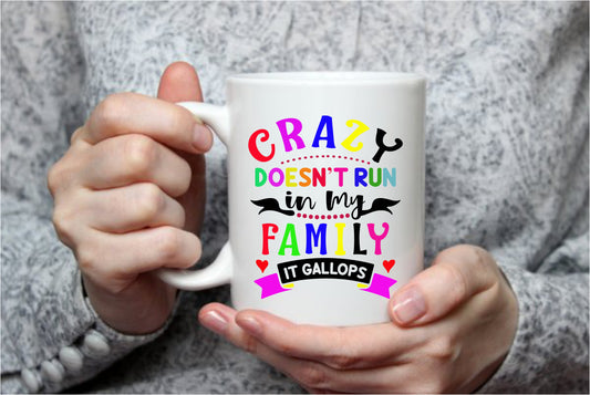 Crazy Doesn't run in my Family It Gallops, 15 oz Mug