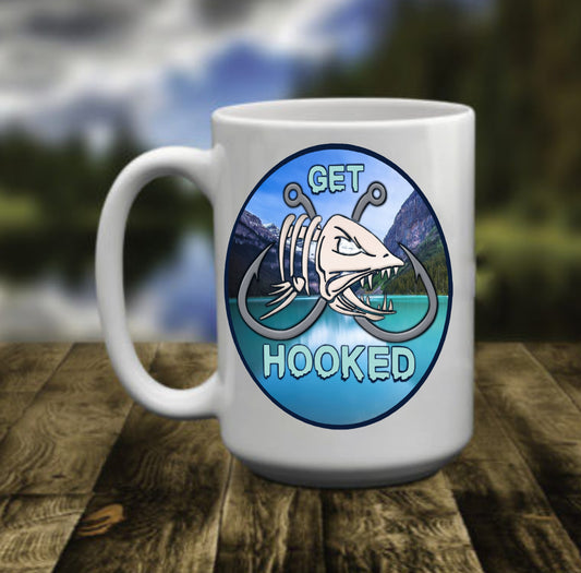 Get Hooked Fishing, 15 oz Mug