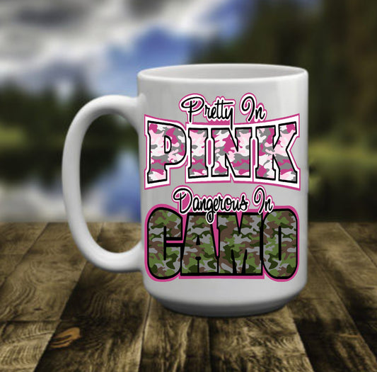 Pretty In Pink Dangerous In Camo, 15 oz Mug
