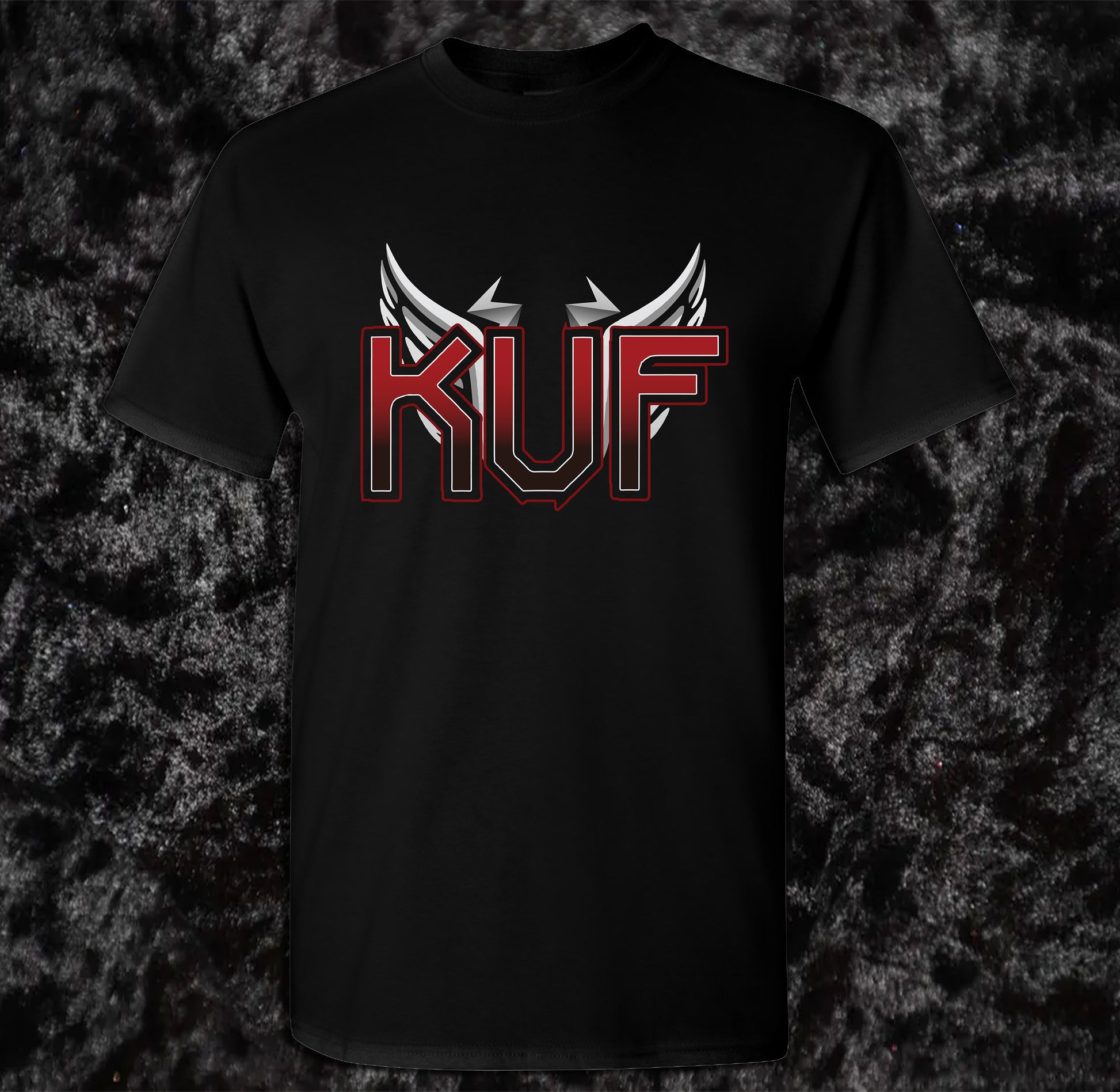 Fly high with our exclusive Kuf shirt featuring our iconic logo adorned with sleek wings on each side. Crafted with premium quality materials, this shirt embodies our band's spirit of freedom, creativity, and soaring ambition. Stand out from the crowd and showcase your love for Kuf with this stylish and symbolic addition to your wardrobe. Perfect for concerts, casual wear, or as a statement piece, this shirt is a must-have for any true fan.